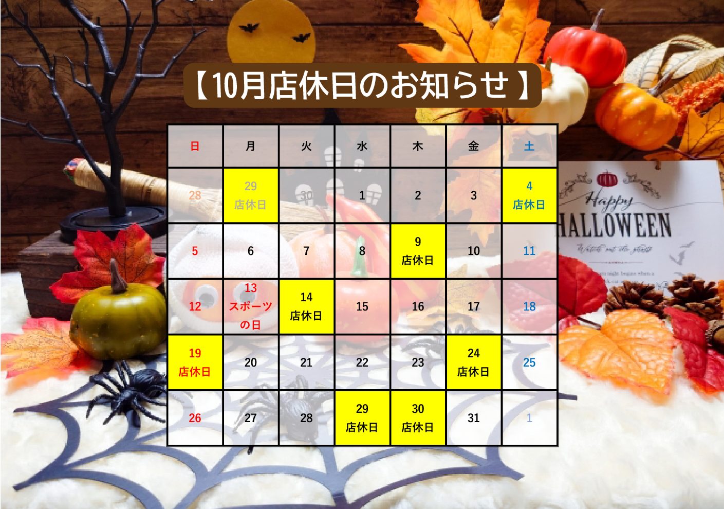 【お知らせ】2025年10月の店休日はこちらをご確認ください