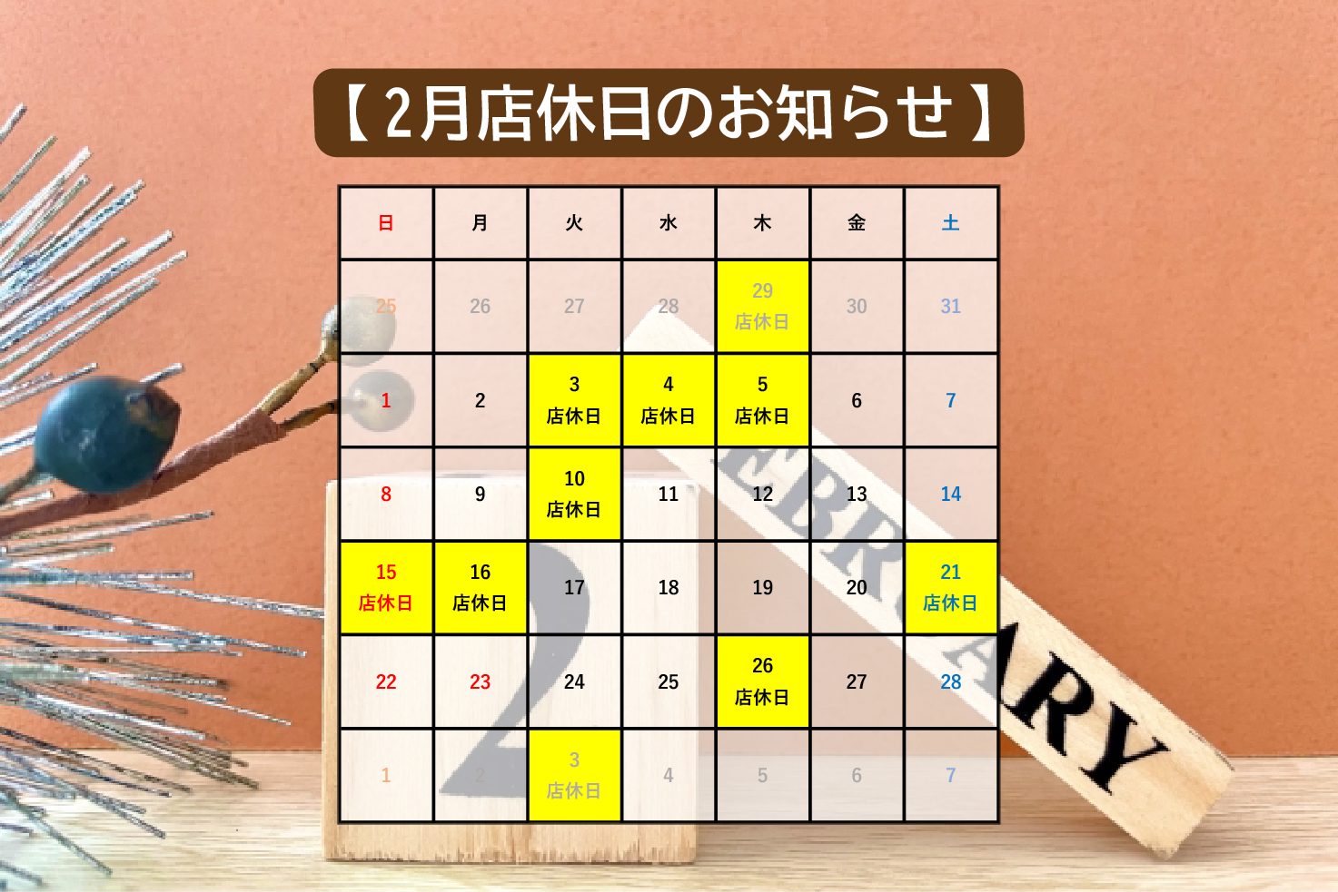 【お知らせ】2026年2月の店休日はこちらをご確認ください